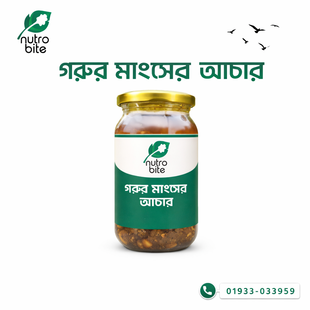 নিউট্রো বাইটের গরুর মাংসের আচার তৈরি করা হয় তাজা ও বাছাই করা গরুর মাংস, খাঁটি তেল ও সুগন্ধি মসলার নিখুঁত মিশ্রণে।